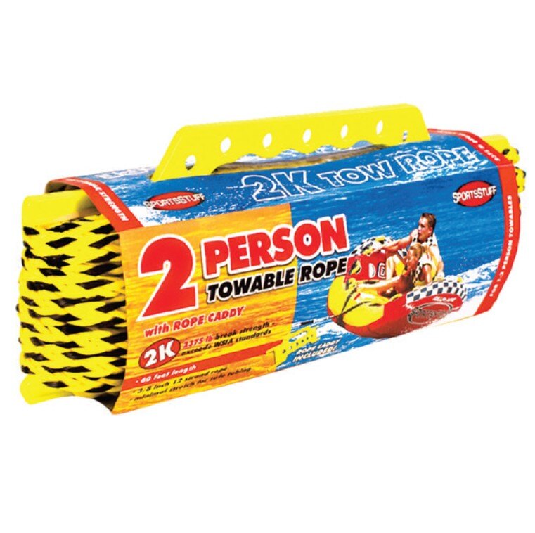 This reliable tow rope is designed for your safety in mind for ultimate ease of use. Accommodates the excitement of up to two riders, the 60 FT tow rope provides plenty ofroom for every kind of tow sport style for hours of towing fun. 60'. 2,375 lb. break strength.