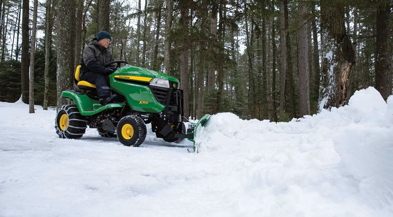 An advantage of lawn tractors is their ability to use equipment for snow removal. Lawn tractor owners can add a John Deere snow blower or front blade to make quick work of moving snow whenever the need arises. Weather enclosure and tire-chain attachments add comfort and performance. Equipment available for snow removal includes: - 44-in. (112-cm) Snow Blower