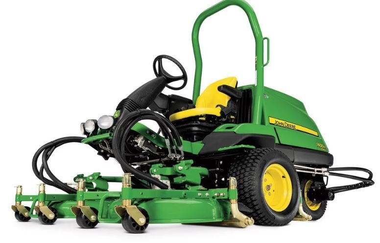 GRIP All-Wheel Drive Traction System moves flow from wheels that slip to those that grip Hill-climbing power is essential with any golf course mower, and this is one area where the A-model PrecisionCut™ and TerrainCut™ Trim and Surrounds Mowers truly excel. A powerful diesel engine supplies power to the system. Combine that with a new larger eHydro™ and wheel motors the GRIP all-wheel drive traction system, and the A-Model is one powerful hill-climbing machine. The new traction drive delivers 35 percent more flow from the hydrostatic pump and 17 percent more wheel torque than previous models to deliver the hill-climbing performance expected with a trim and surrounds mower. The GRIP system transfers hydraulic flow from wheels that slip to wheels that grip. For example, if the right front wheel starts to slip, hydraulic flow goes to the left front and rear tires to maintain traction power. |