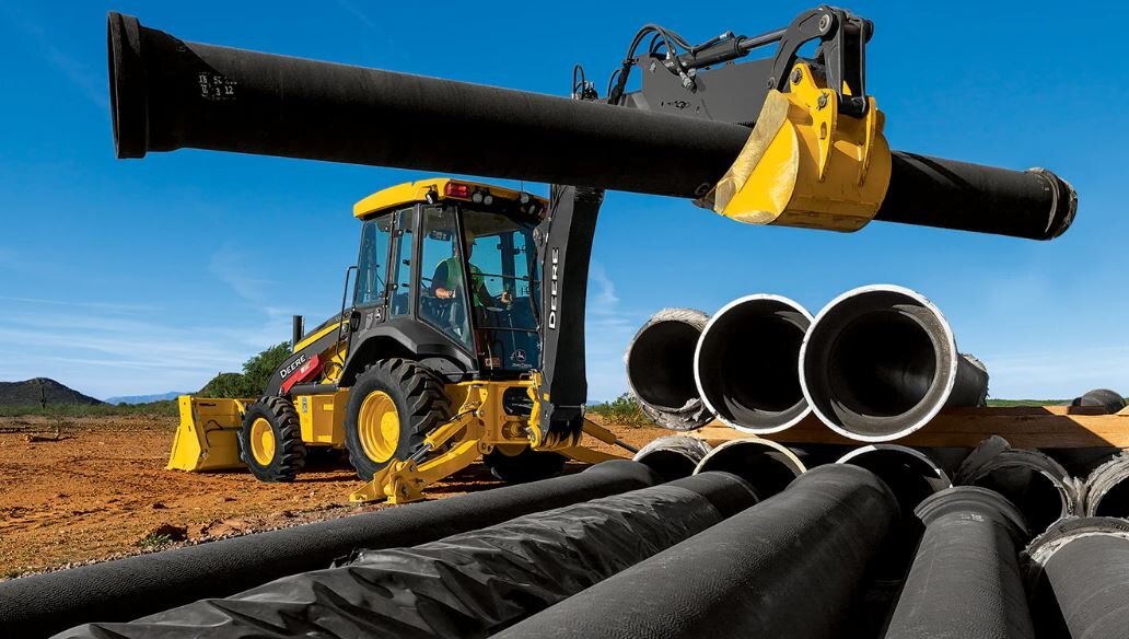 OVERVIEWThe open center control valve and pump combination has been used on Deere backhoes since 1997. This field-proven system has served the product well over its lifetime, providing such benefits as high contamination tolerance, excellent swing control, open center pressure/force control, operator “feel”, and excellent multifunction performance as compared to other open center systems in the marketplace. The 310 G includes an axial-piston pump (32.8 GPM).