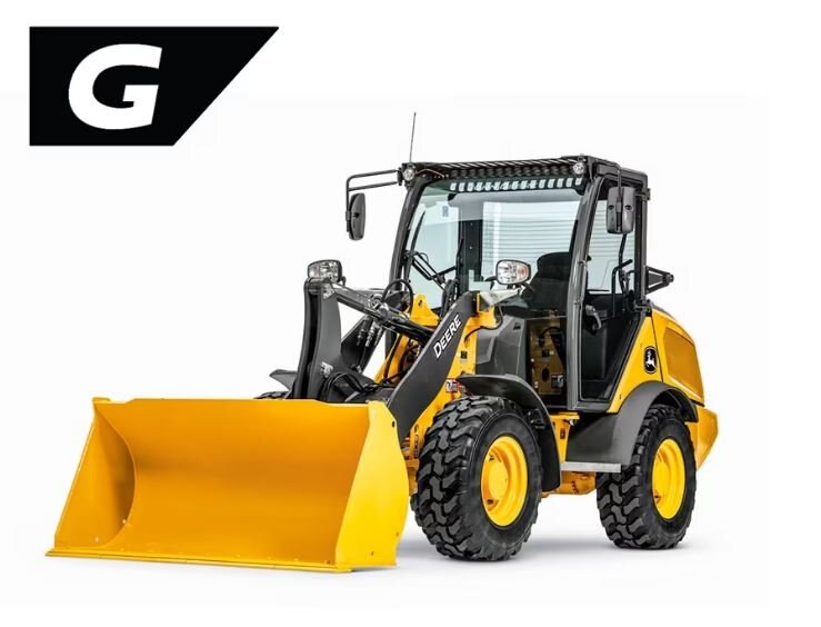 Deere compact wheel loaders are known for their abilities to fit into tight working spaces. The G-tier lineup provides owners and operators a rugged and reliable yet economical solution that doesn't sacrifice on quality or Deere and dealer support that they've come to expect. - The 184 G-tier and 204 G-tier have machine height and width measuring right below 2430 mm (8 ft) in height (when configured with a canopy) and 1780mm (5 ft 10 in.) in width meaning machines can fit through small barn door openings or other small working areas.