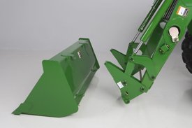 The 500E loader is designed to be a rigid mounted loader to help be affordable as well as close to tractor for improved maneuverability and visibility. If an upgrade is needed to allow for loader removal, the parking stand and coupler kit is available. Once this kit is installed, it will have integrated parking stands and couplers to allow customer ease of removal. |