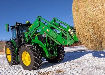 Redesigned to improve compatibility The 600R Loader has been redesigned to work effortlessly with the model year 2020 6110M and 6120M Tractors. The 6110M and 6120M Tractors are equipped with a sloped hood to improve operator visibility. In cadence with this updated tractor design, the 600R Loader features curved booms, making an ideal tractor-loader combination. This combination also includes a 22.9-cm (9-in.) reduction in overall machine and loader length, improving forward visibility by over 2.1 m (7 ft). Pairing the model year 2020 6110M or 6120M Tractor with the 600R Loader allows visibility directly to the loader attachment, providing more efficient performance with any loader application. Panoramic roof for increased visibility As the lift height of the R-Series Loaders increases, the panoramic roof inside of the 6M Tractor cab provides additional visibility to the entire lift-cycle of the loader. The 600R Loader has a lift height up to 391.2 cm (154 in.), allowing an operator to stack three bales. Through the larger panoramic roof of the 6M Tractor, tasks such as stacking bales can be done quickly and efficiently. Light-emitting diode (LED) light option for variable operating conditions To further enhance visibility, the 600R Loader has the option to include LED lights. With LED lights mounted onto each side of the loader boom, performing loader applications in variable operating conditions is made easier. Pairing the loader LED light option with an LED light package on the 6110M or 6120M Tractor will provide unmatched visibility to enhance operator experience during any task. |