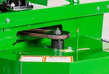 The shield protecting the drive belt are easy to remove without the need of a tool. This provides easy access to the belt sheaves, belt, and spring-loaded idler. |