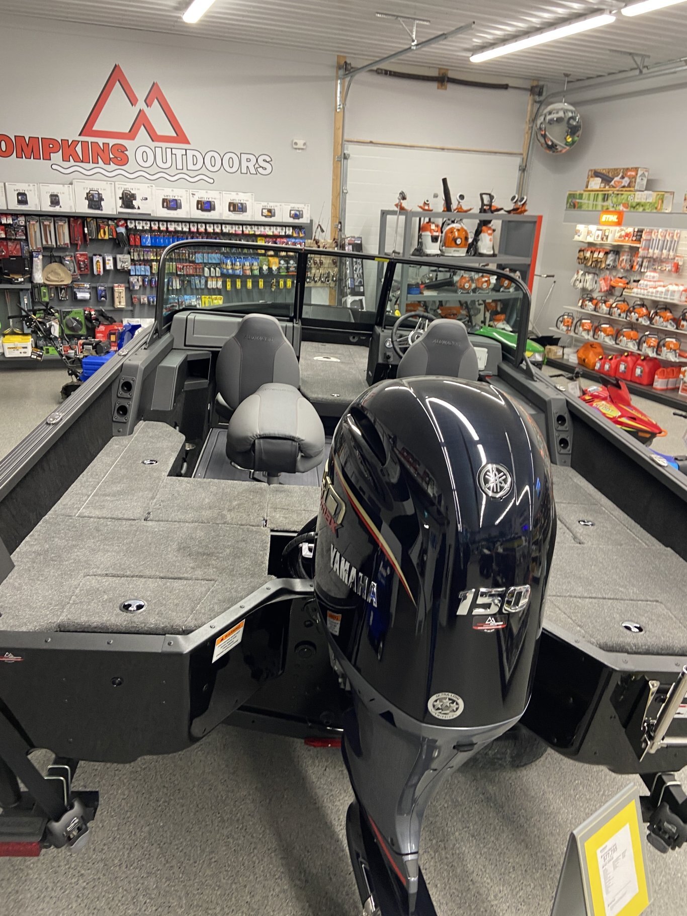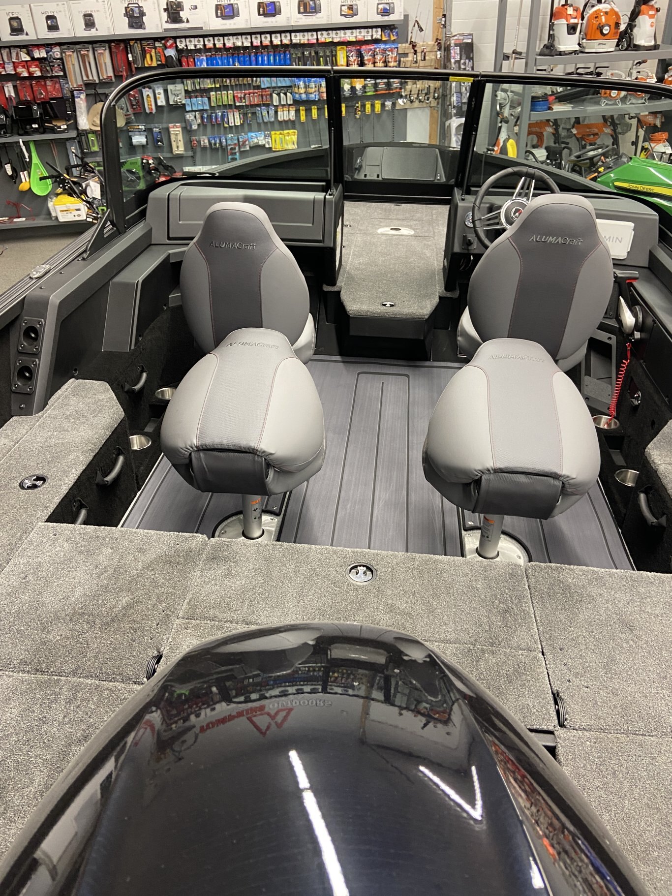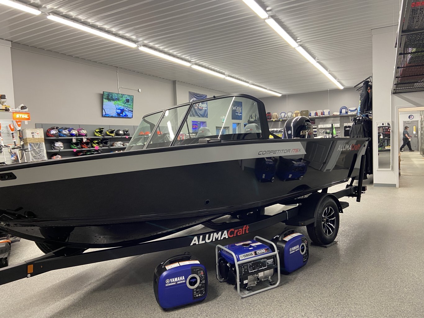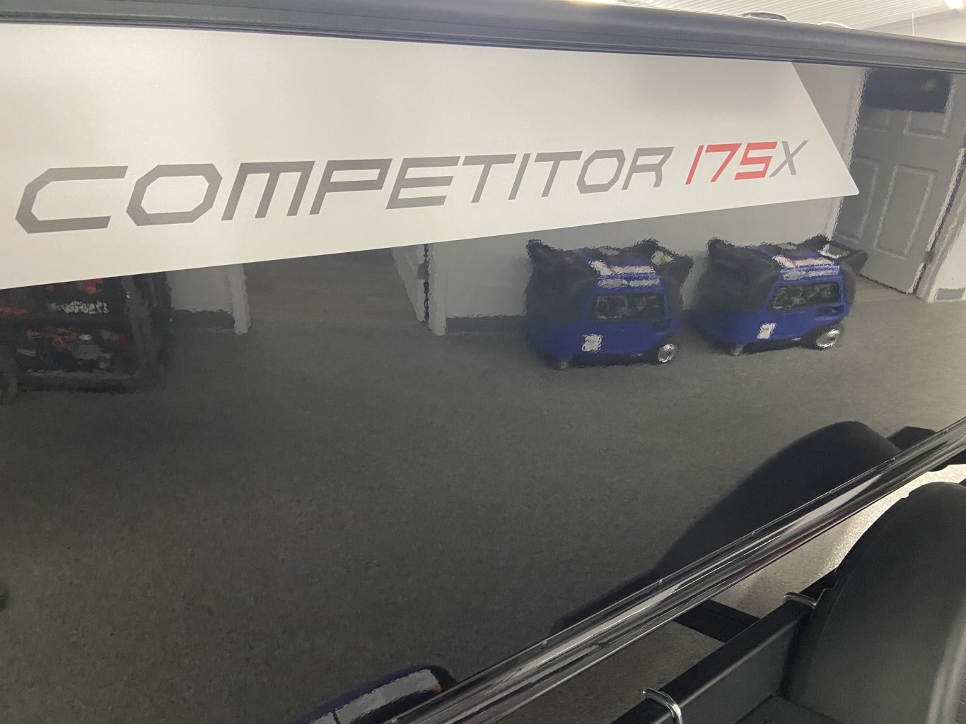 The Competitor 175X Sport features a captain helm and passenger console topped with a full walk-through windshield for a comfortable and dry top speed ride